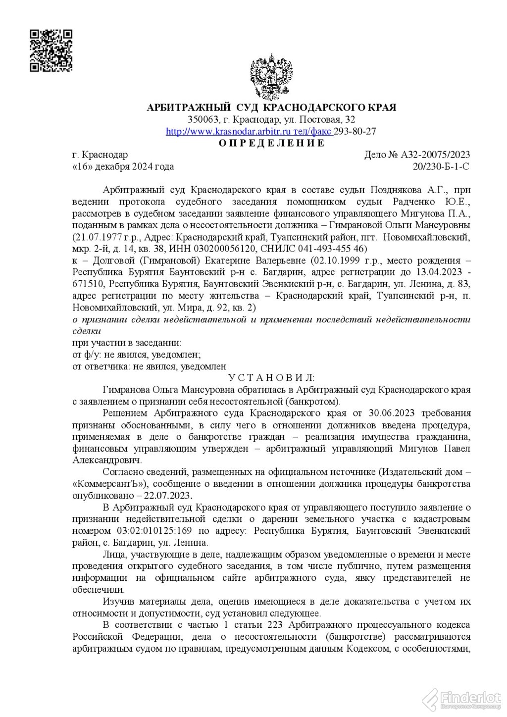 «Финдерлот» – один из крупнейших агрегаторов торгов по банкротству в России.