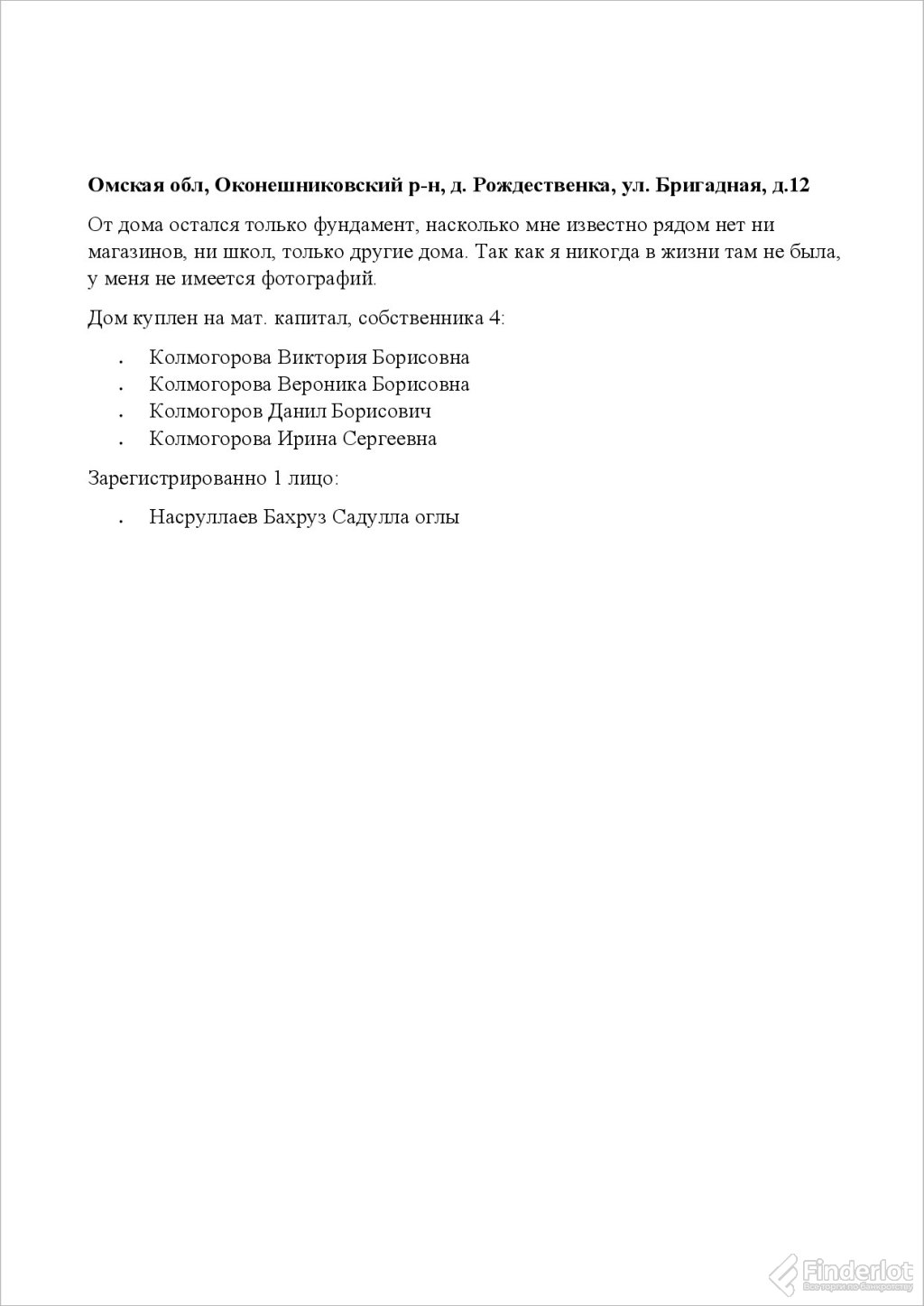 1/2 доля в праве на жилое здание, площадь: 47,7кв.м., кадастровый…