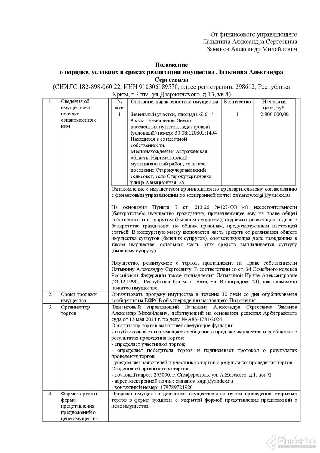 Проведение торгов: с 07.05.2026 00:00