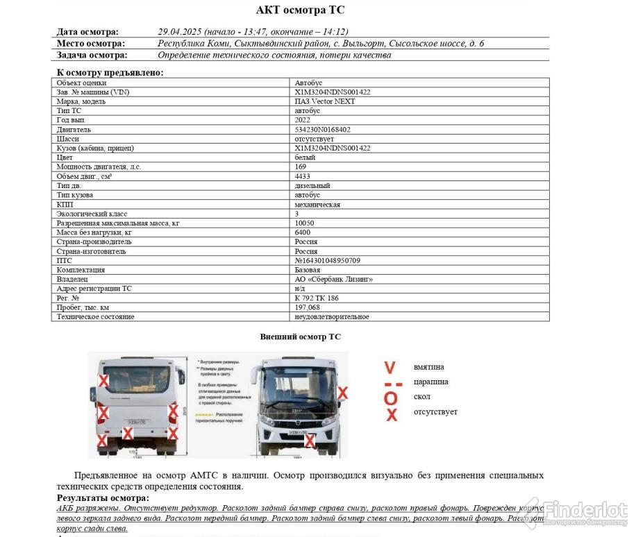 Ао «сбербанк лизинг» лот №3969. автобус паз vector next, 2022