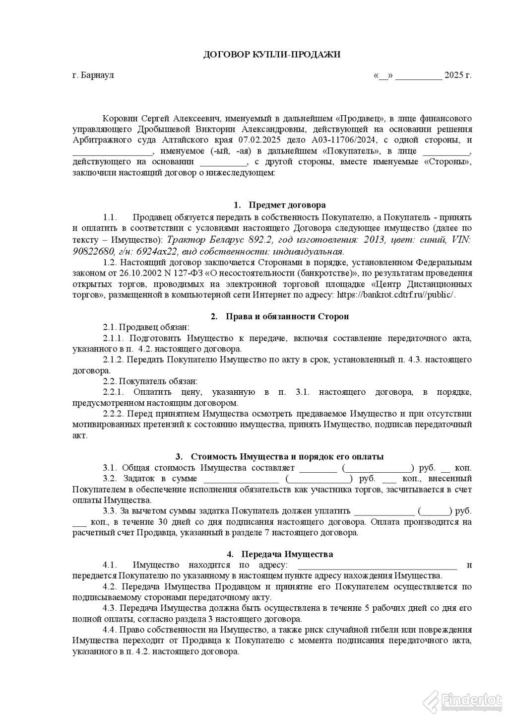 Проведение торгов: с 13.12.2025 00:00