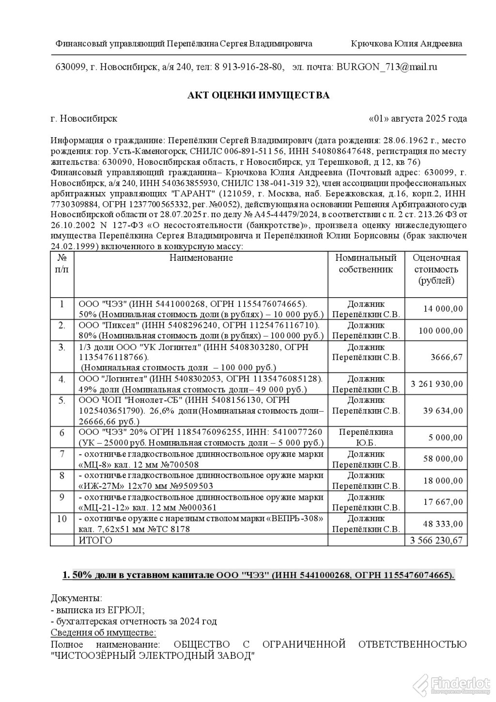 100% доля в ооо “лоренс” (инн 5406991457 огрн 1185476053180)