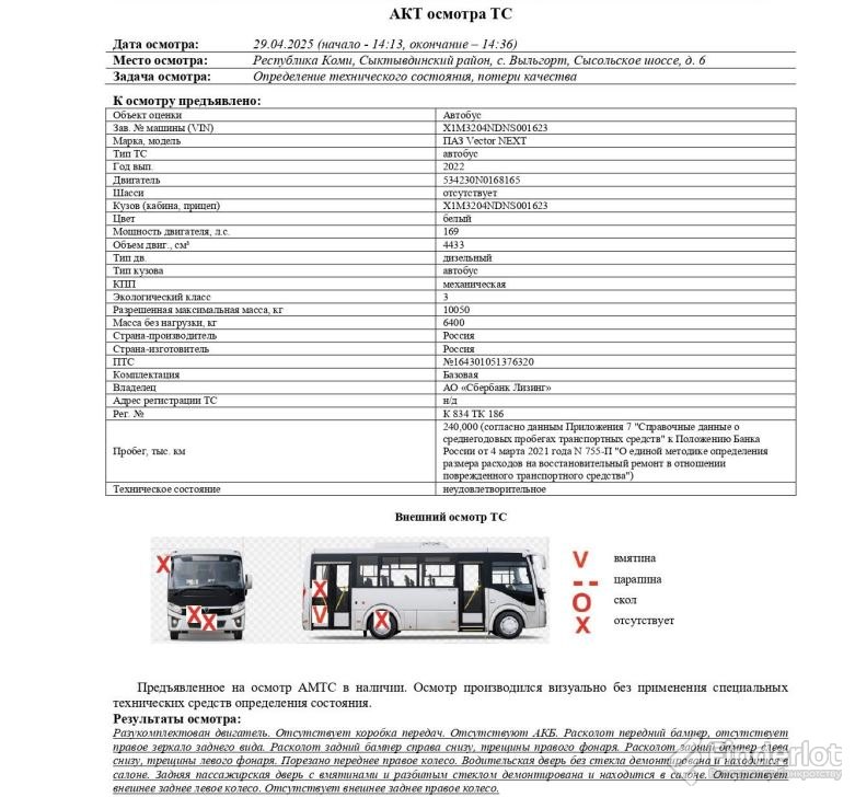 Ао «сбербанк лизинг» лот №3969. автобус паз vector next, 2022