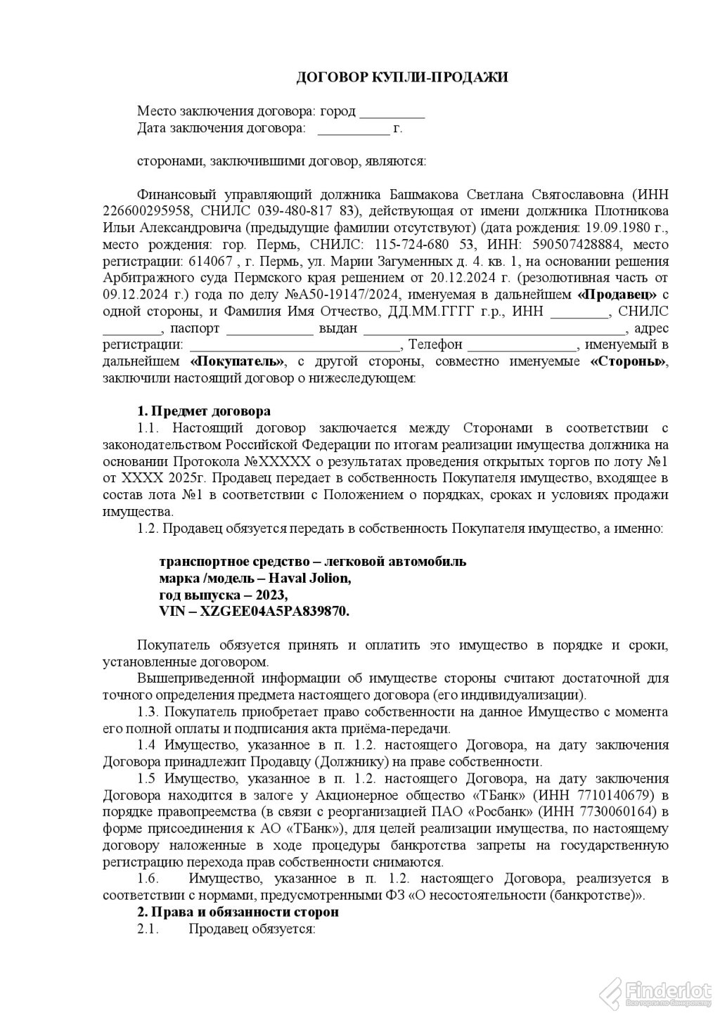Торги по продаже имущества плотникова ильи александровича (инн…