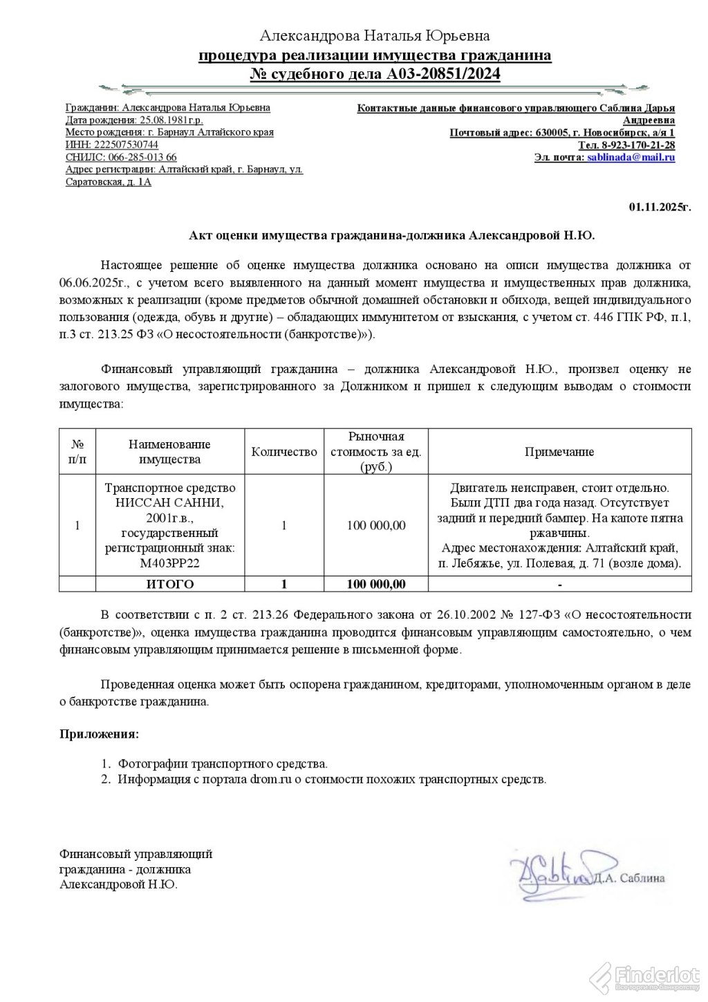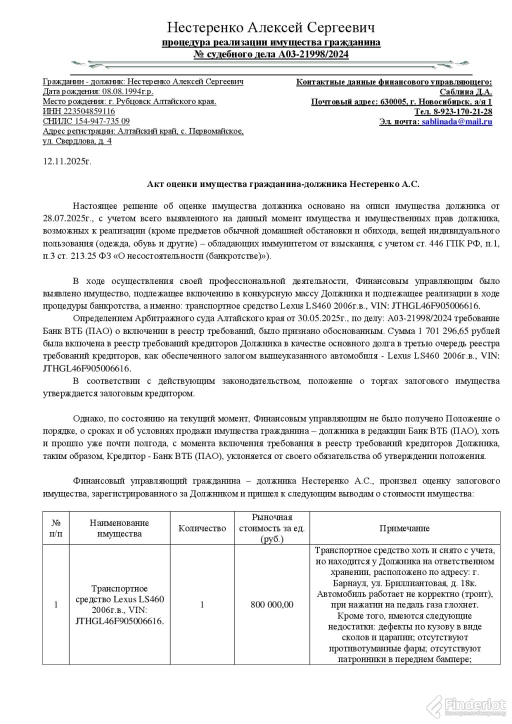 Тучина авто а03-23467/2024 лот №1