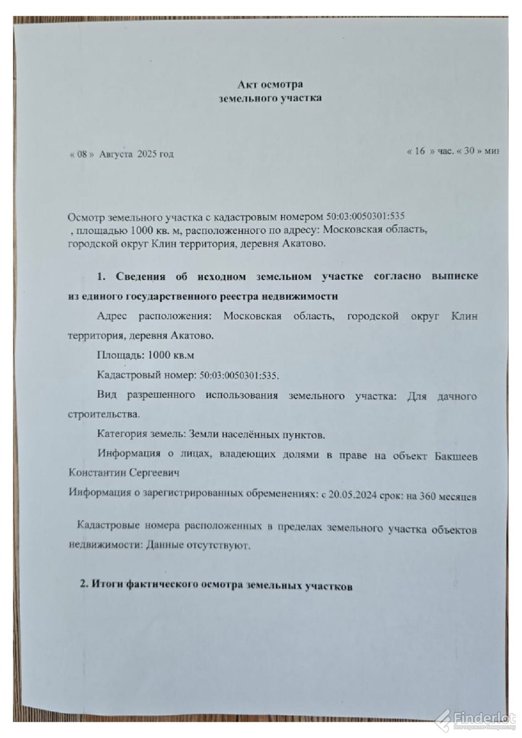 Земельный участок в московской обл., 845 +/- 20 кв.м.