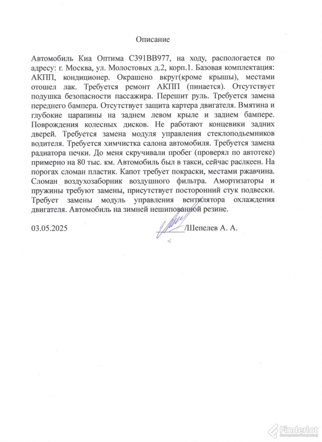 Торги по реализации автомобиля лот №1